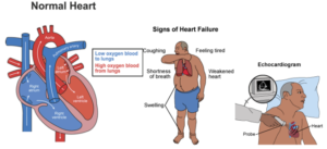 Heart failure happens when your heart has trouble pumping the right amount of blood through the body. This means the body will not receive the oxygen it needs to work well. When the pump is not working well, blood can back up into the lungs, neck, belly, and arms. It can also cause swelling in the legs or other parts of the body.