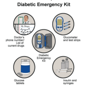 Make sure your child always carries a diabetes emergency kit. This should have things like a list of current drugs, glucometer and strips, insulin and syringes, glucose tablets and glucagon. Talk to your doctor about what to include. Make sure everything has a current date, as some of these things can expire.